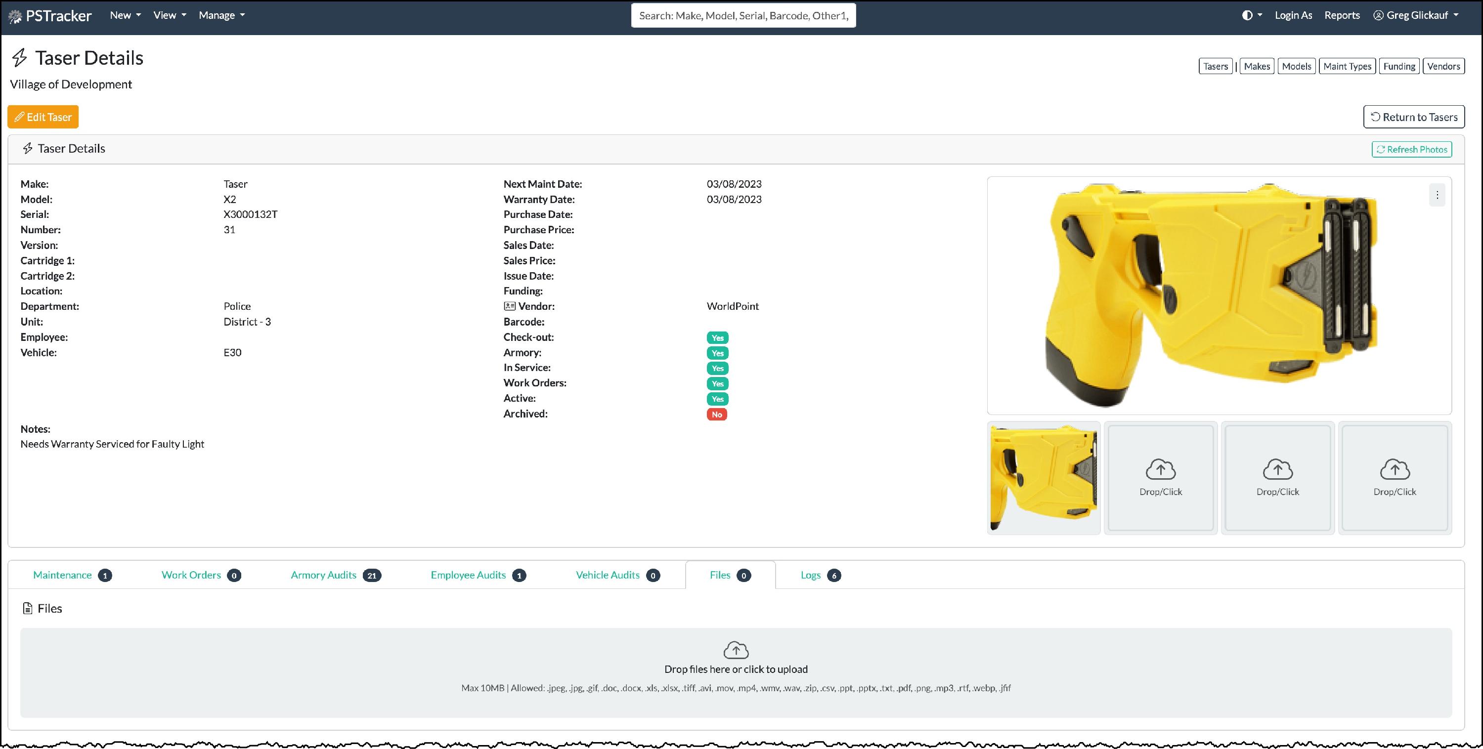 Adding files to an taser is a great way to scan in and attach paper documents such as receipts, purchase orders, or even photos to store and associate with this taser.