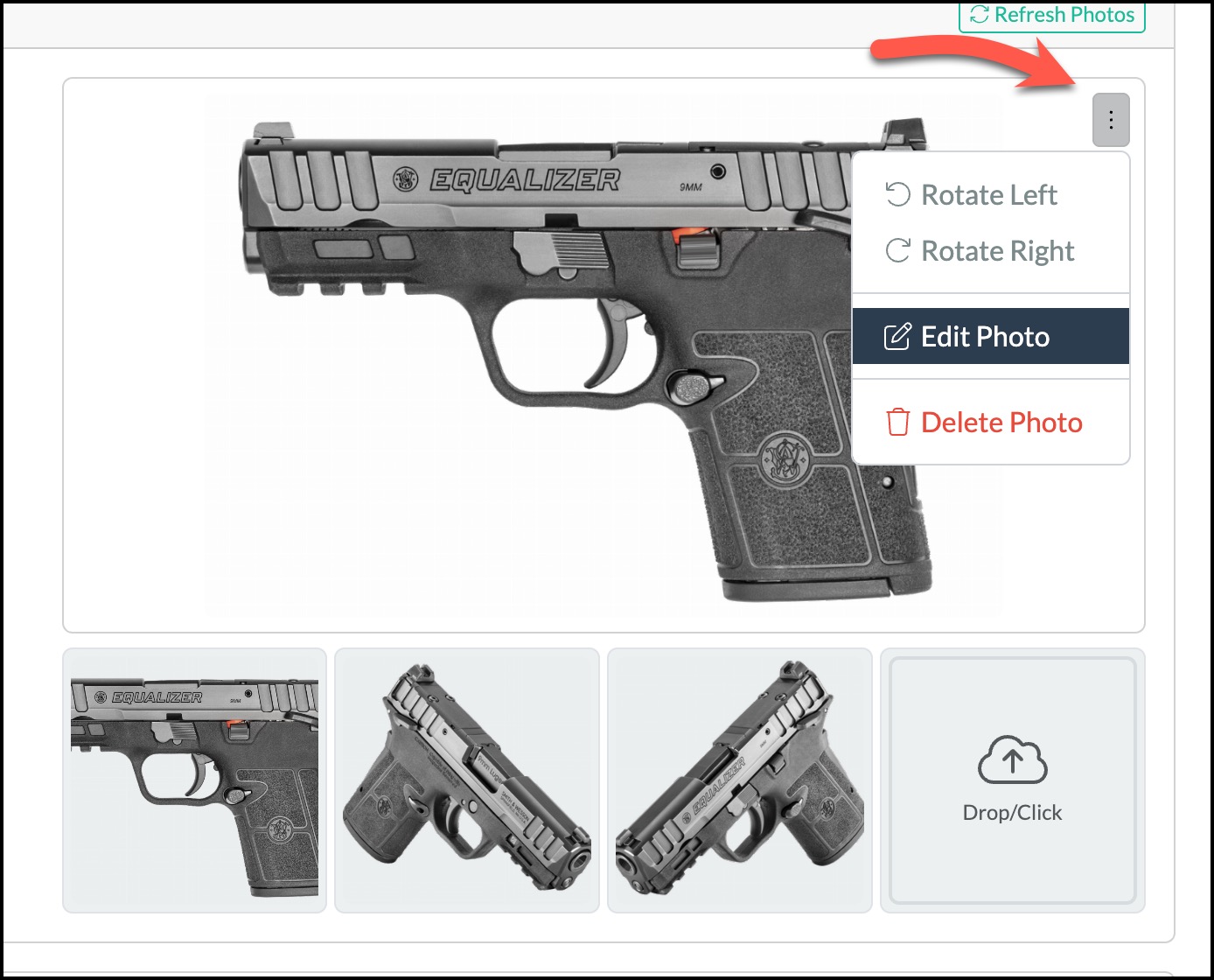 To Manage a photo, make sure its the main photo displayed, then click the elipses at the top right corner of the image.