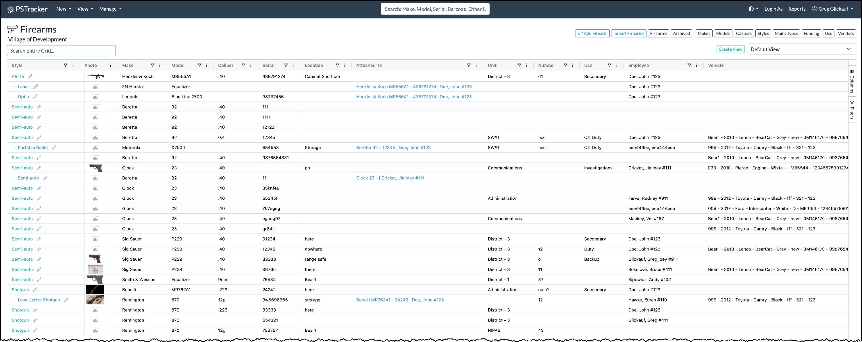 The PSTracker Firearms Module allow agencies to track and manage their agency firearms.