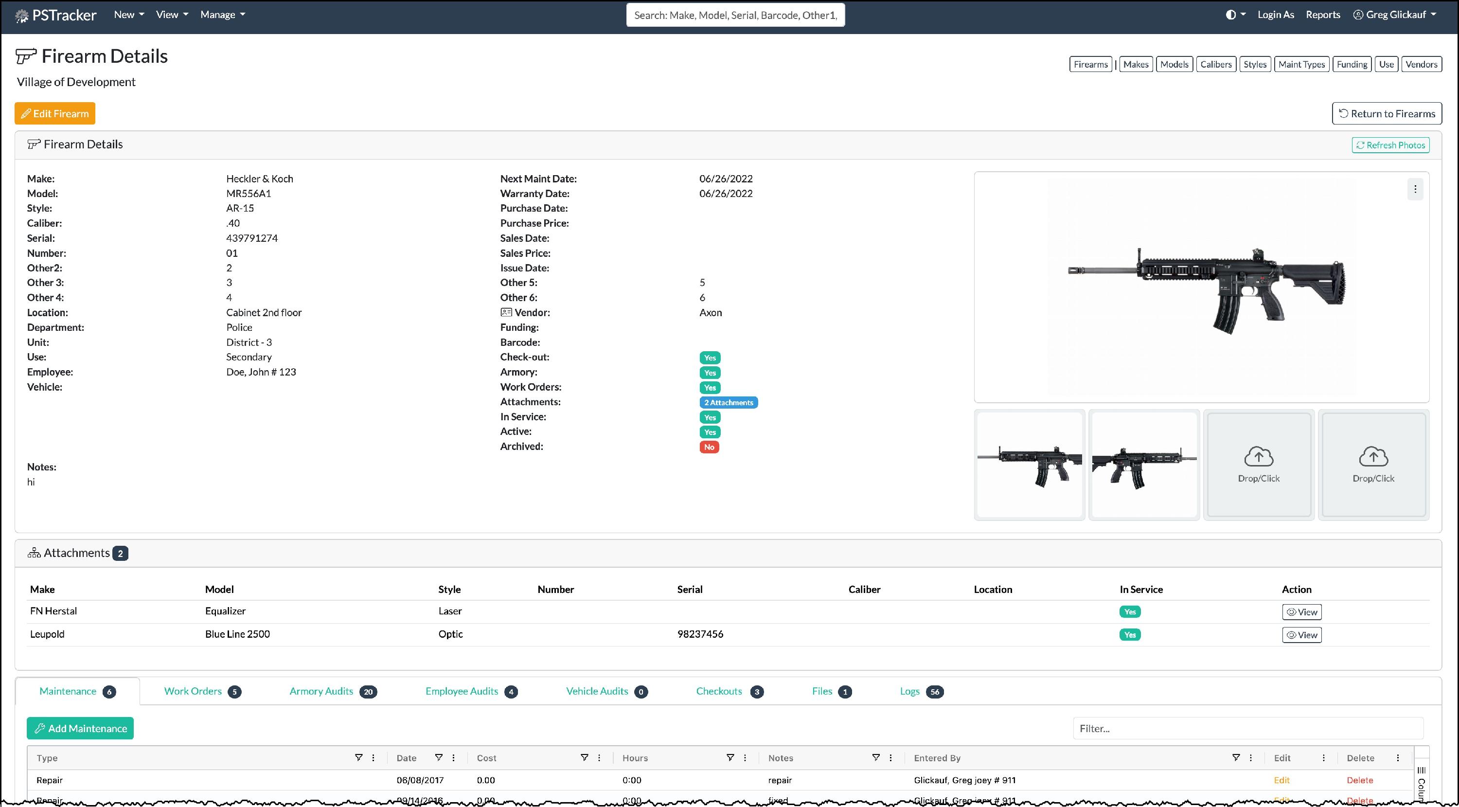 Adding files to a firearm is a great way to scan in and attach paper documents such as receipts, purchase orders, or even photos to store and associate with this firearm.