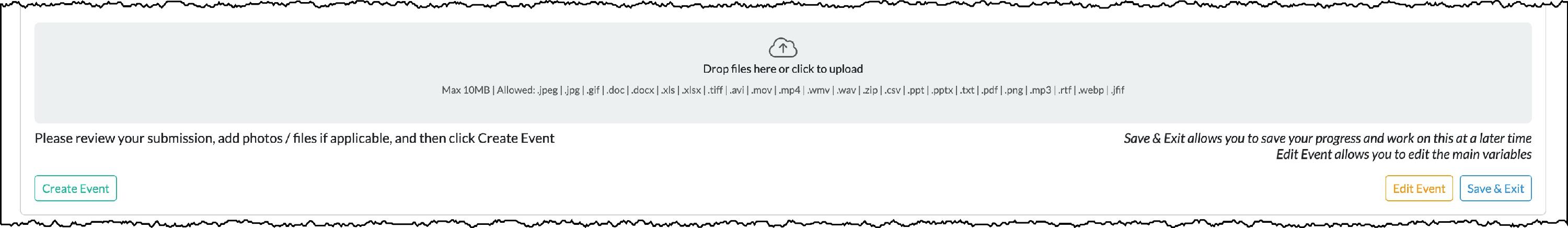 - Save & Edit - Click Save & Exit to save the event as is, so you can come back and finish the event at a later time. An event that has been Saved will be visible on your dashboard until it is opened again and the user clicks Create Event.