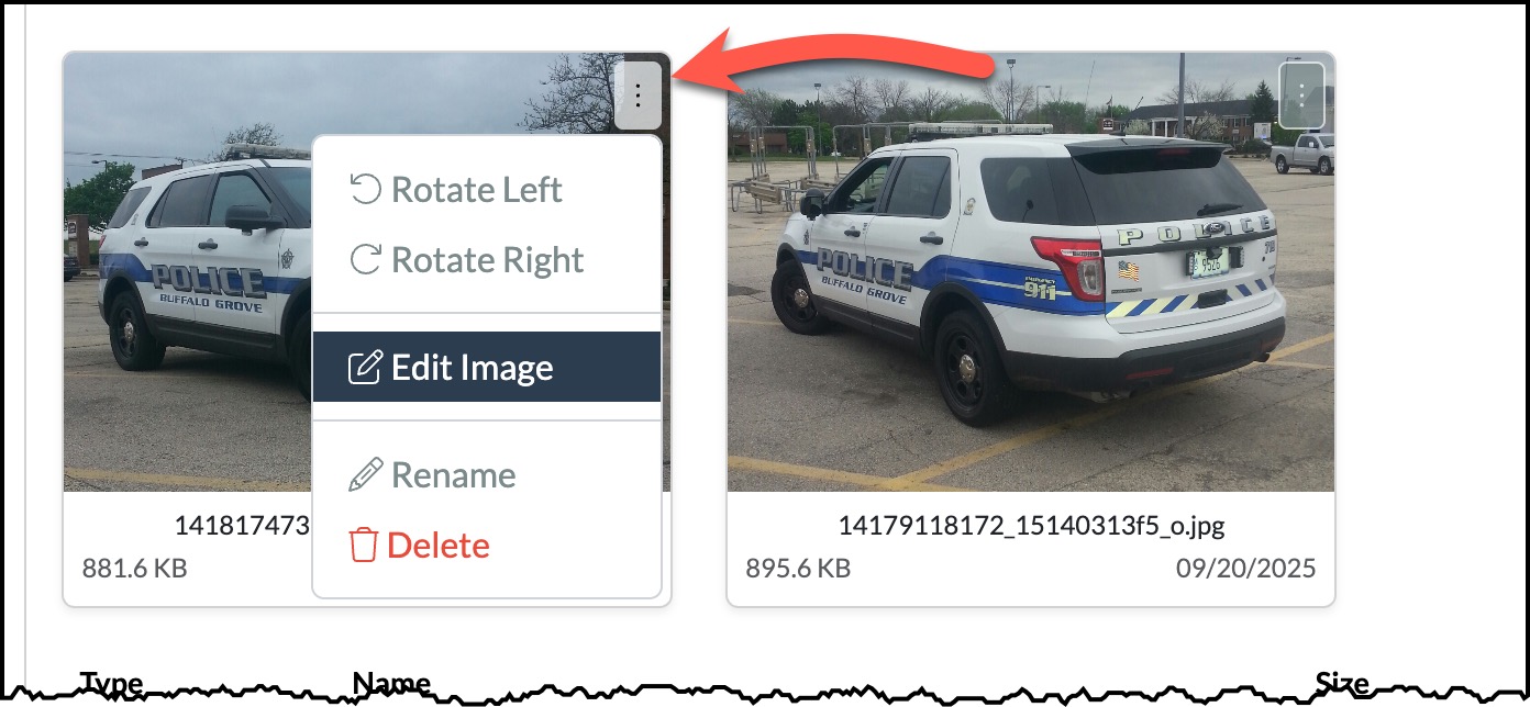 If you need to rotate, edit, or remove a photo. click the right corner of the photo and select an action.