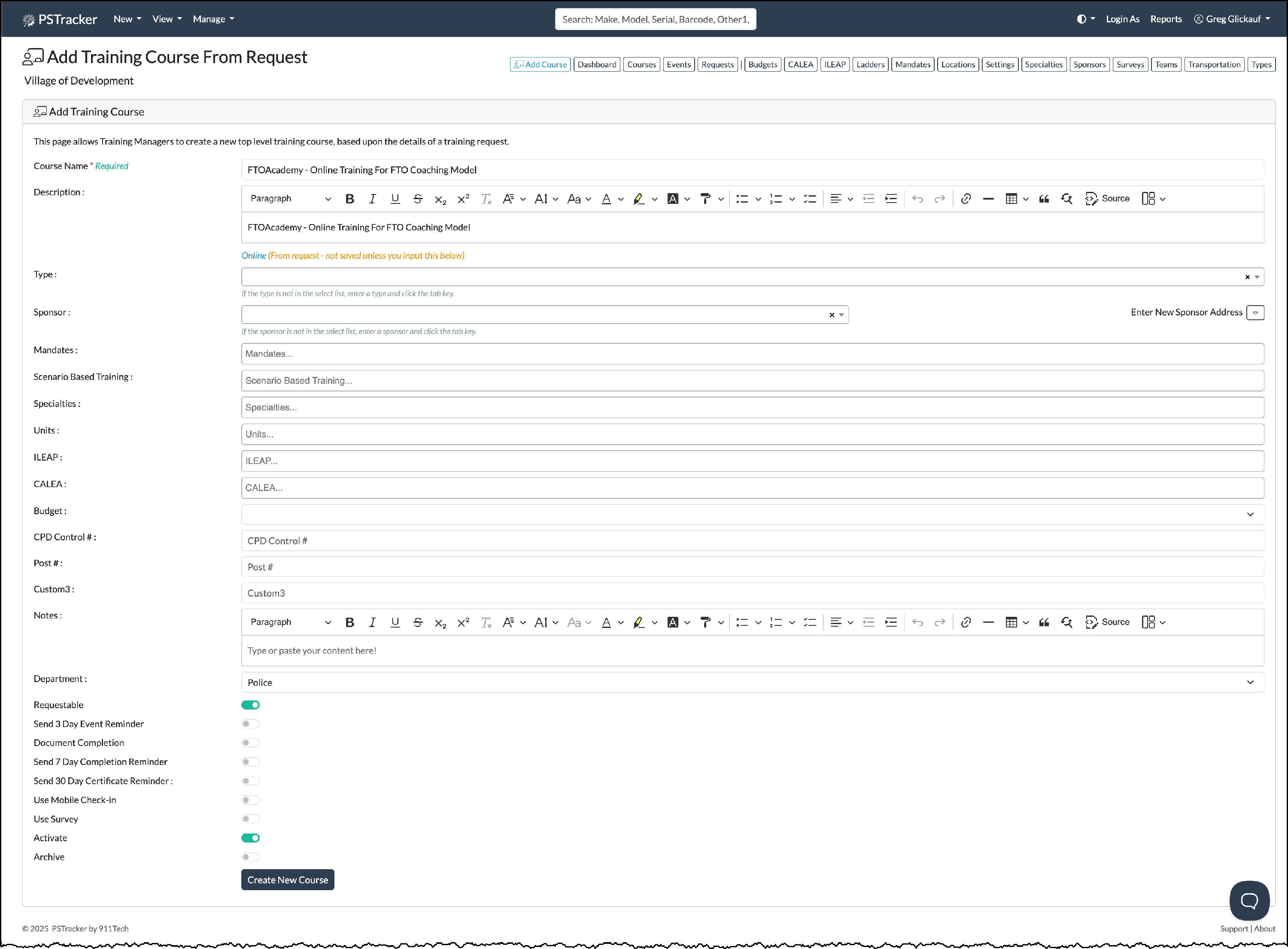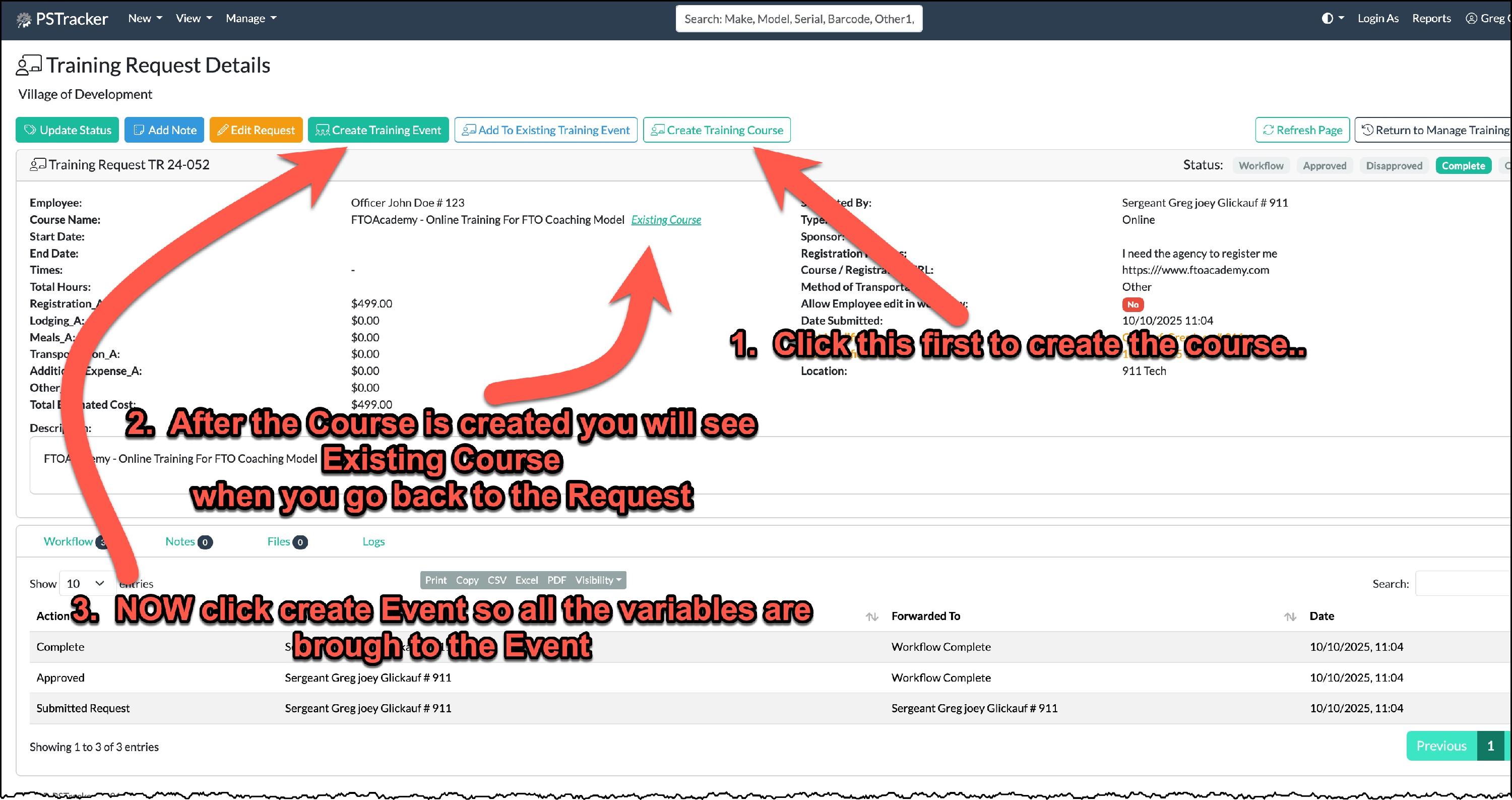We created a special page to simplify the process of creating a training course and/or event based upon a training request.
