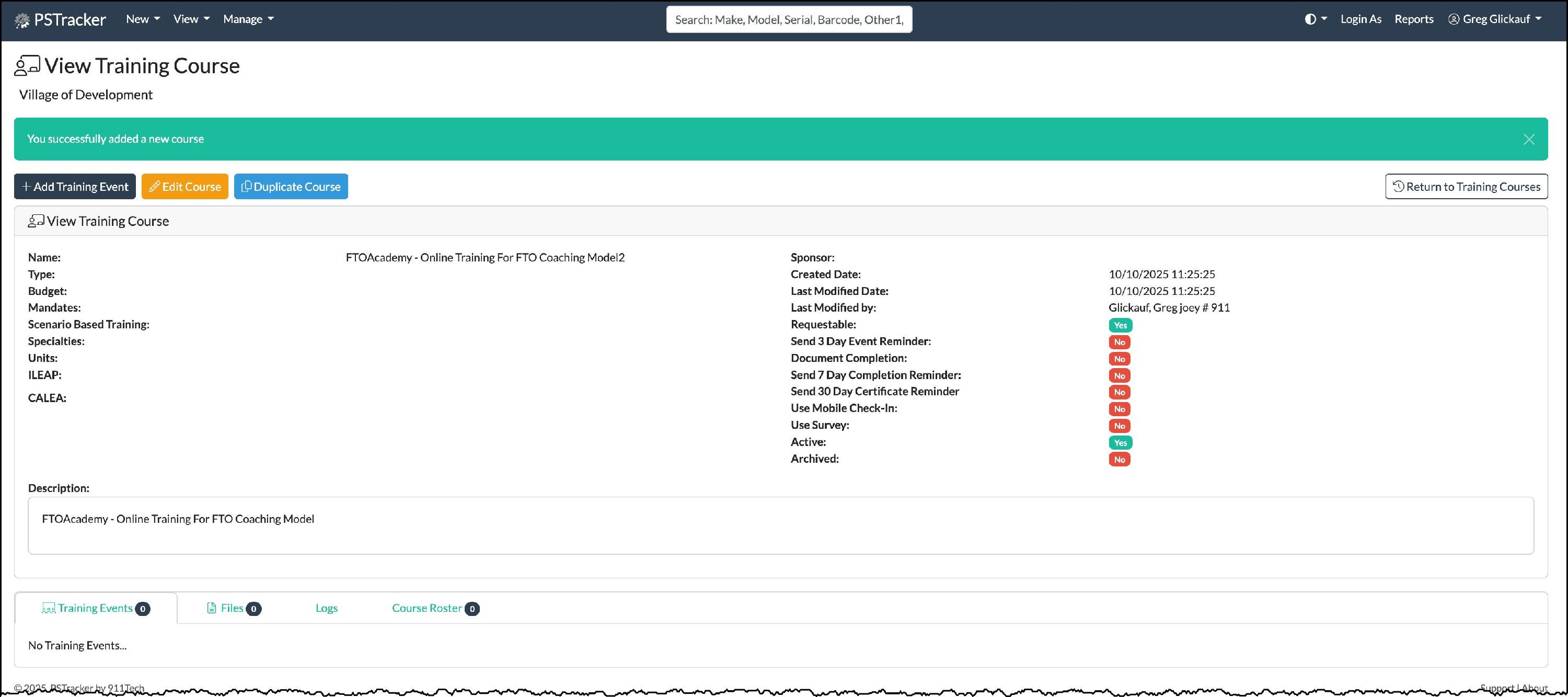 Your new Training Event will be created and for historical reference the Training Number of the new Training Event will be added to the existing Training Request.