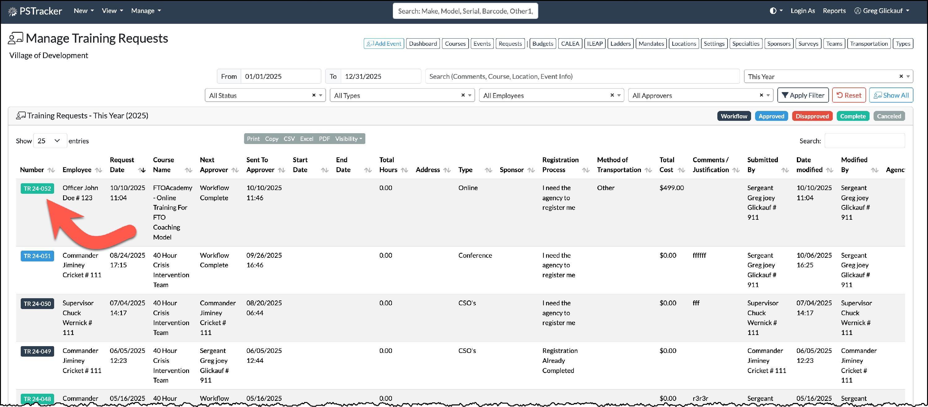 NOW NAVIGATE BACK TO THE REQUEST. Generally Manage => Training Requests