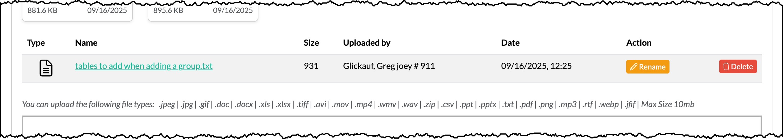 If you need to rename or remove a file, us the buttons in that files row.