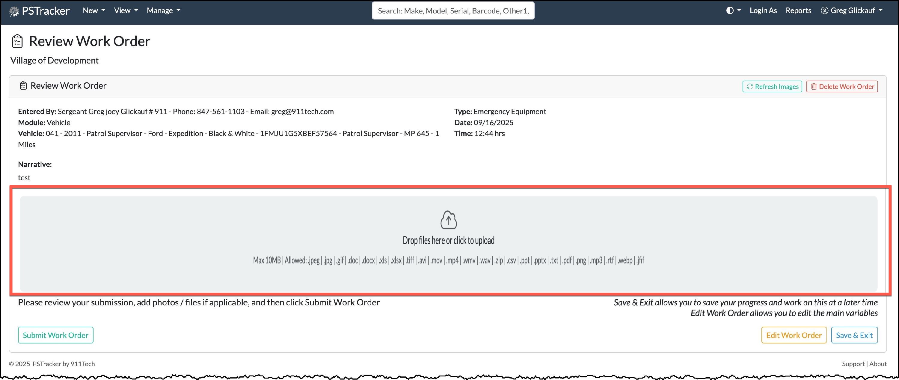 The PSTracker Work Order System was designed to quickly and easily document issues.