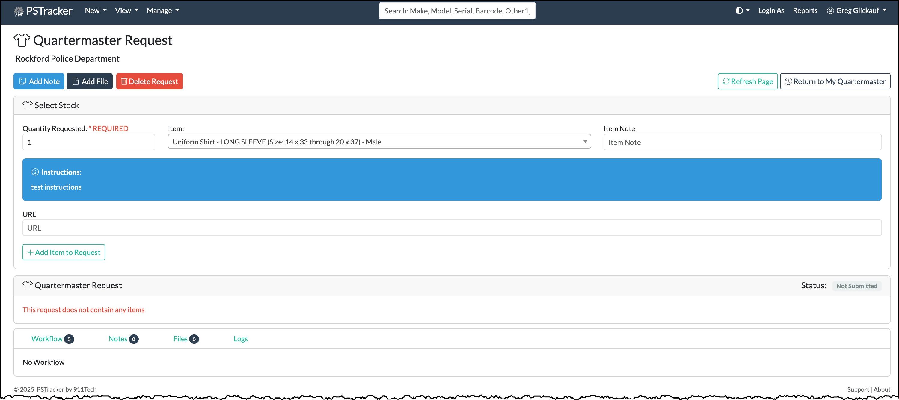 The screen will refresh and you will see the item has been added to the Quartermaster Request section