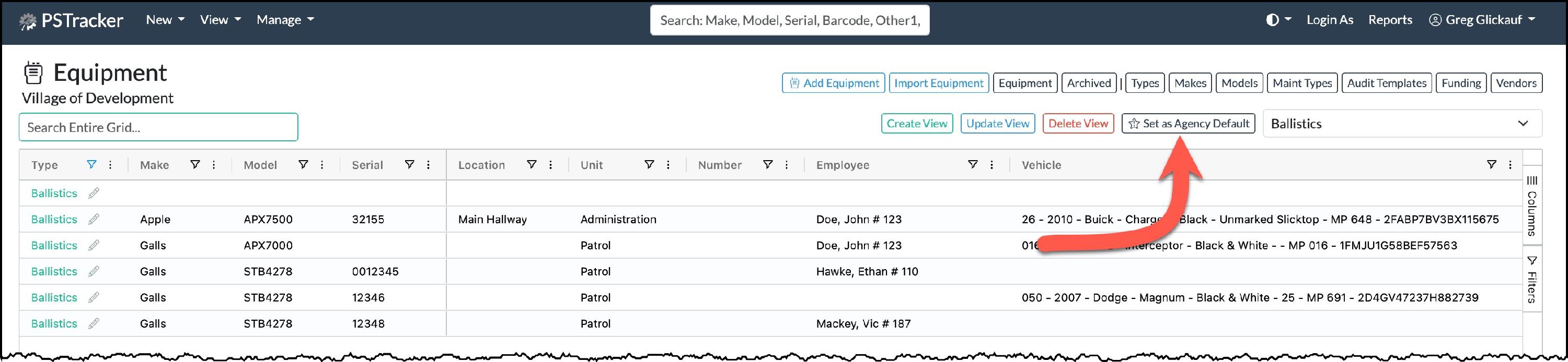 - With the view you want to set as AGENCY DEFAULT active, click the Set As Agency Default button