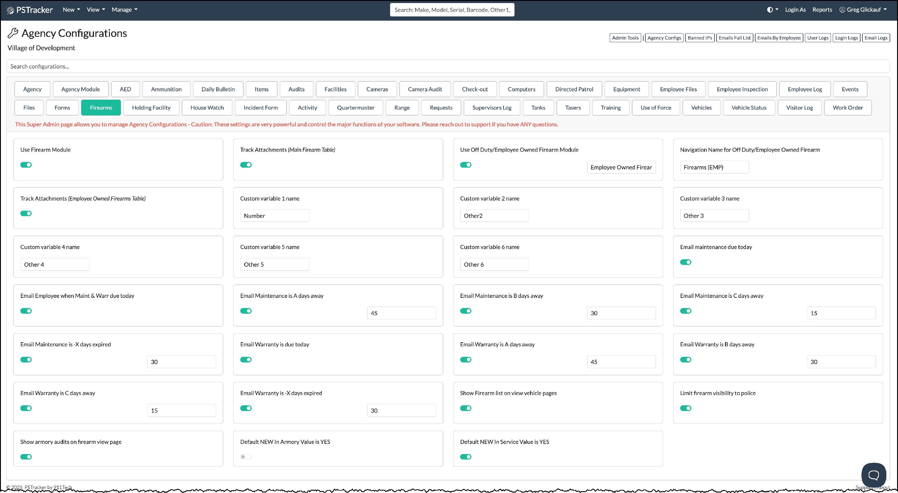Track Attachments (Employee Owned Firearms Table) - Default is Off