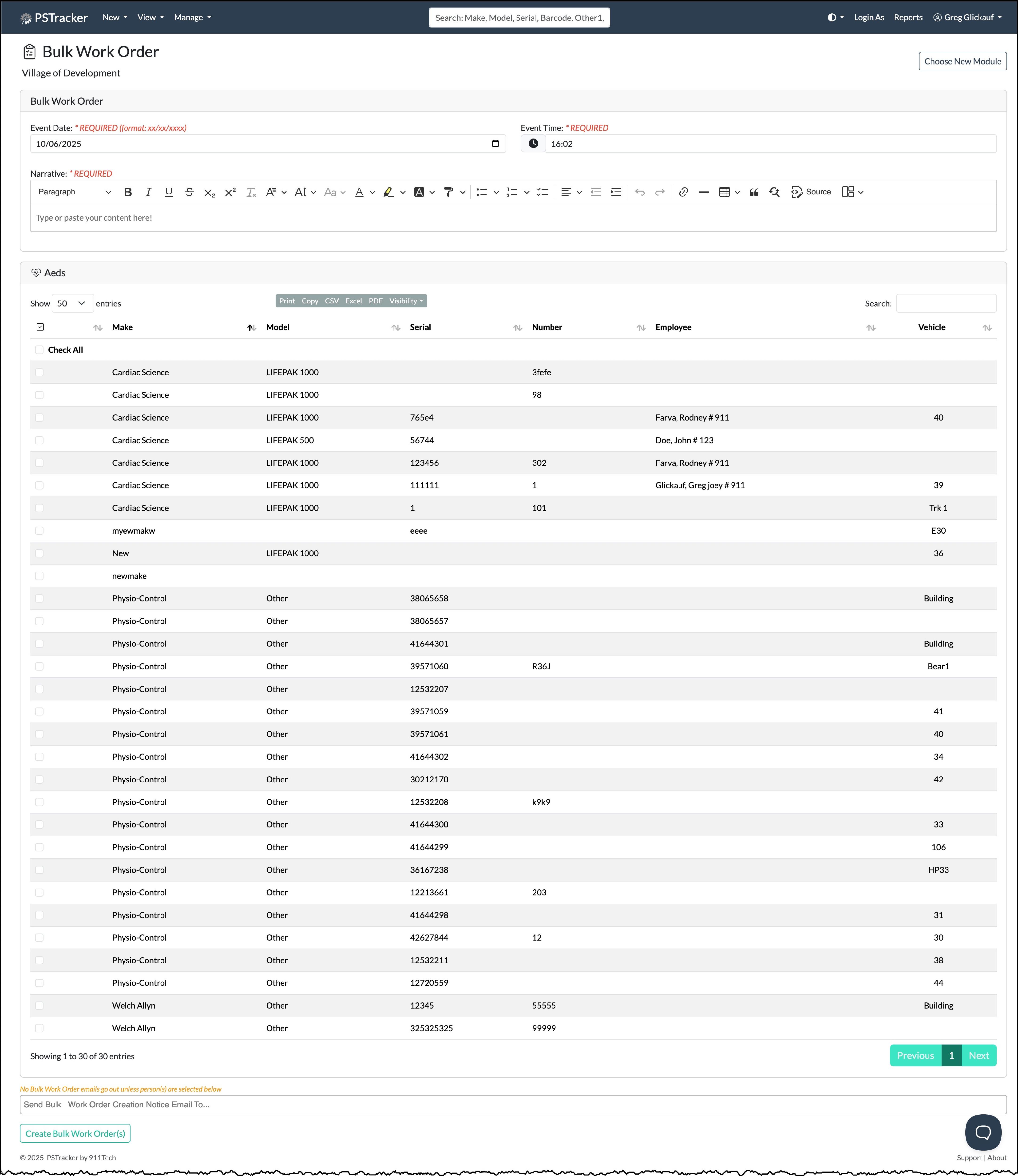 If you need to generate multiple work orders within the same module, you can use the Bulk Work Order process. The flow is identical to that of Bulk Maintenance.