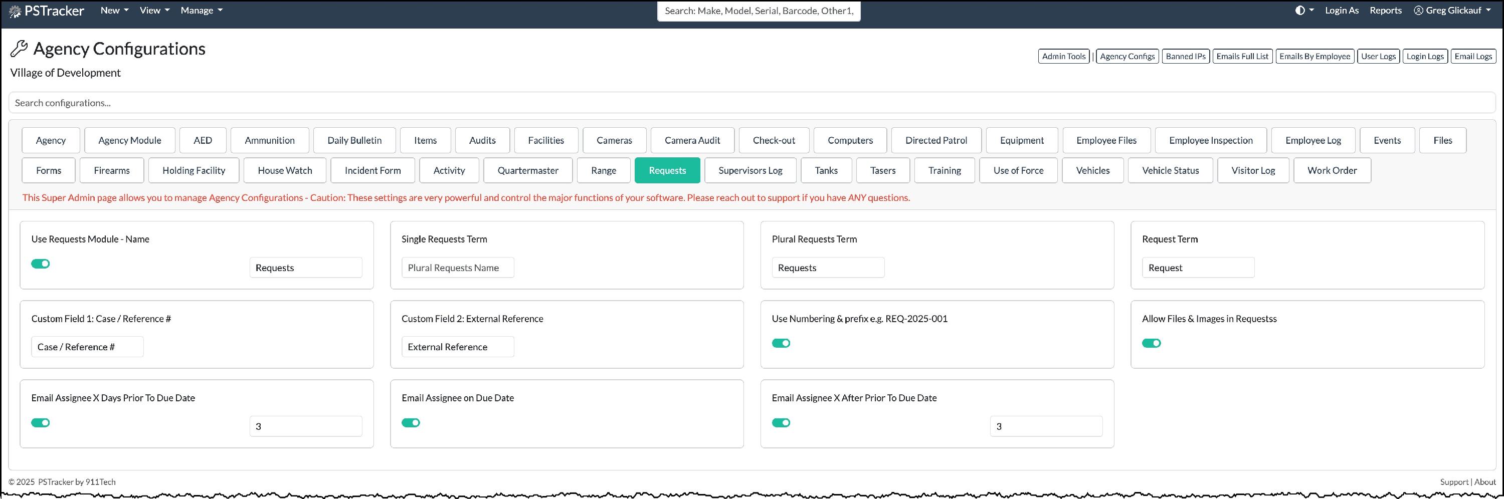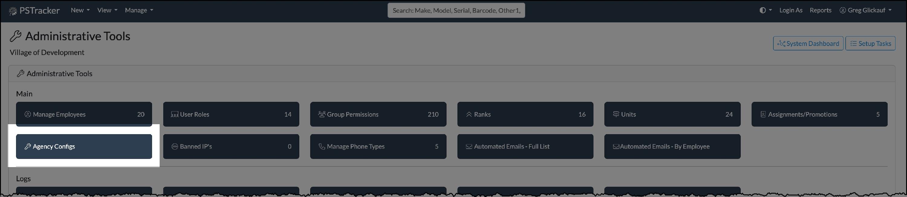 Your Name => Admin Tools => Agency Configs