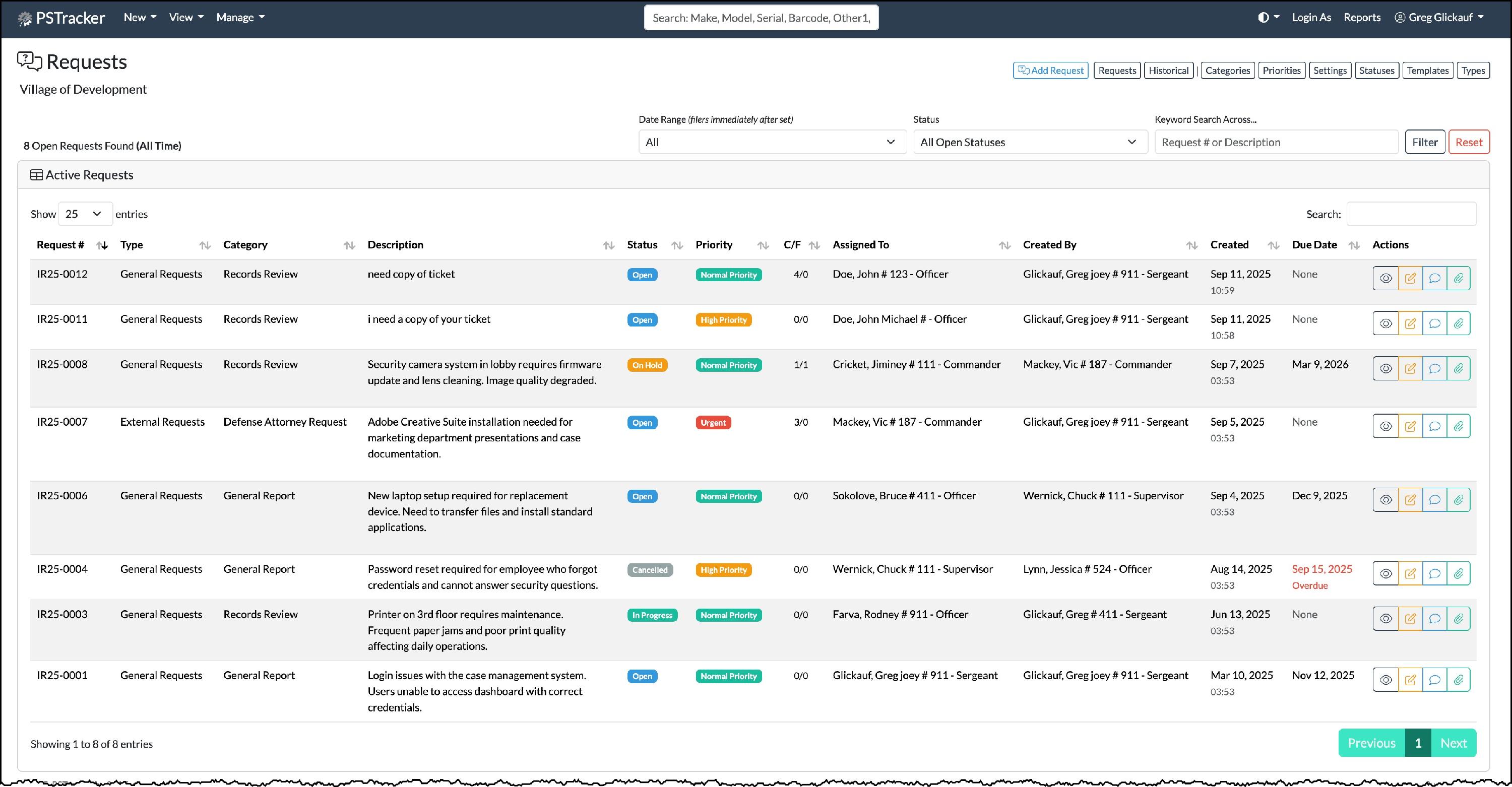 - Priorities - The urgency of the request.