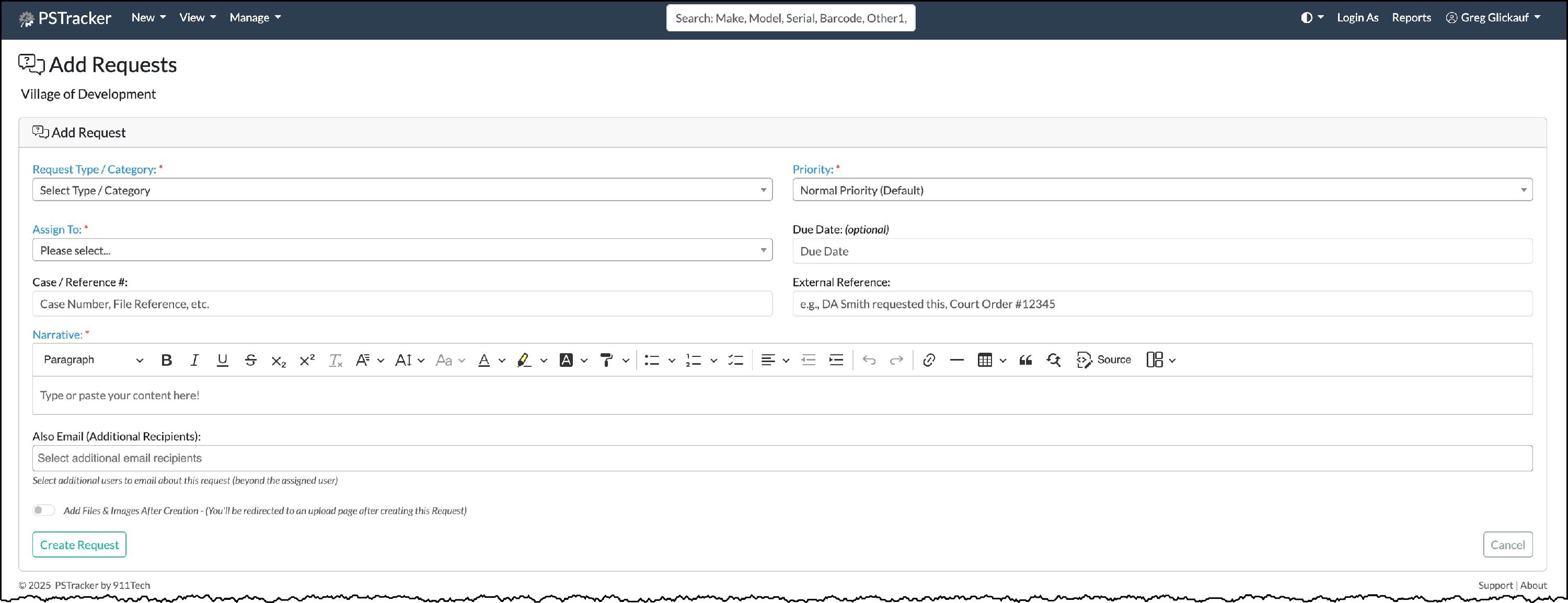 if you will be adding images or files to the request, toggle ON Add Files & Images After Creation