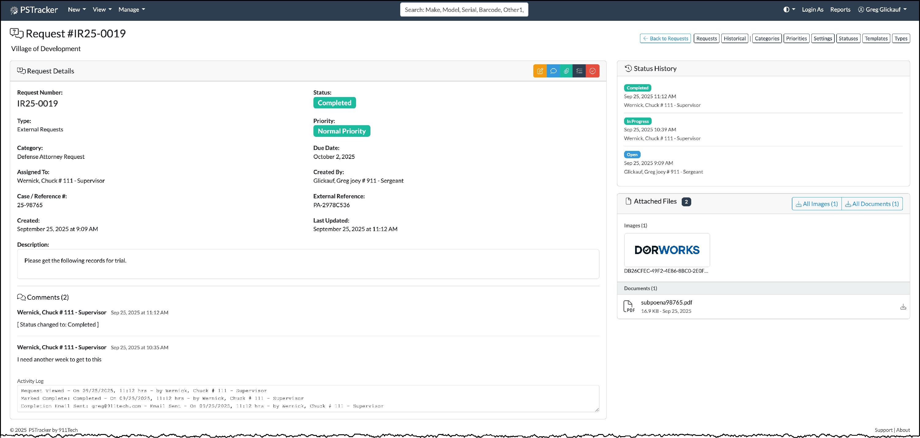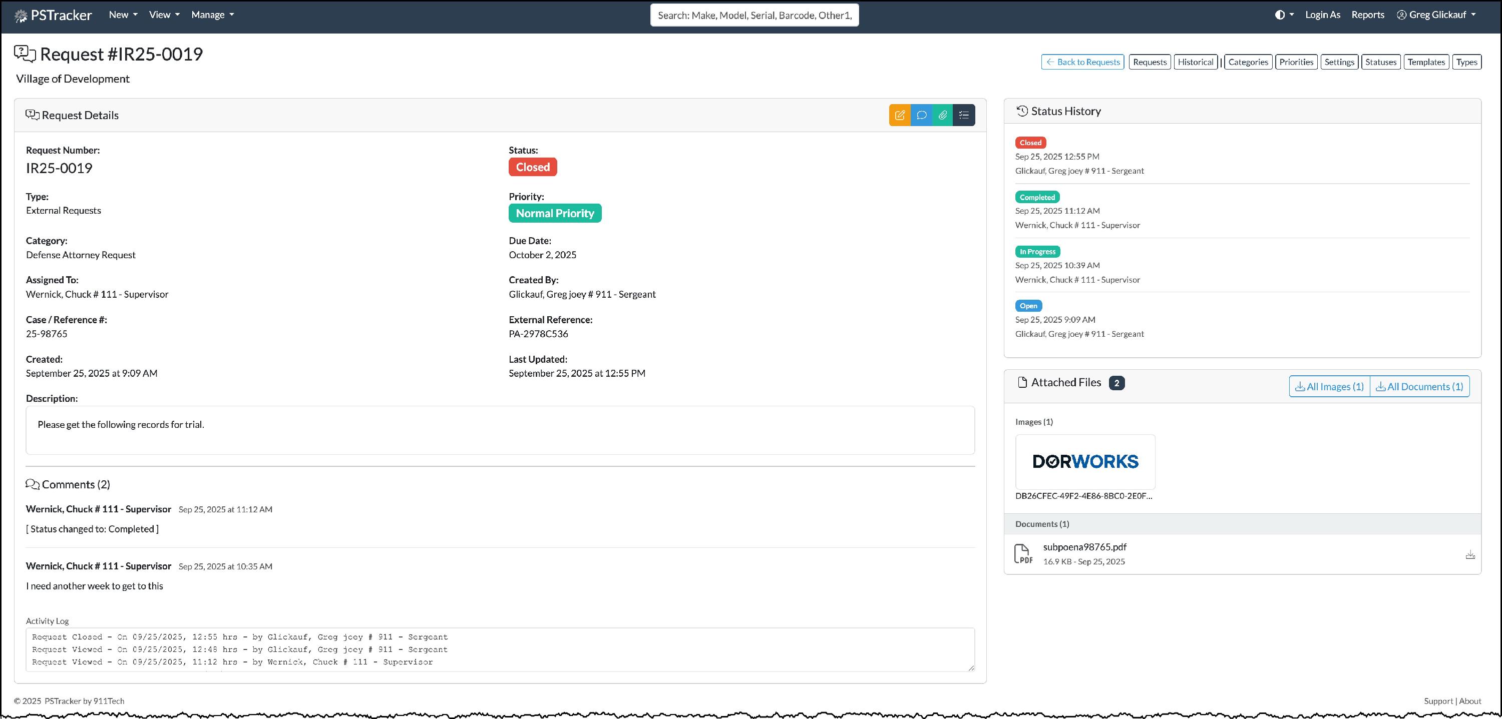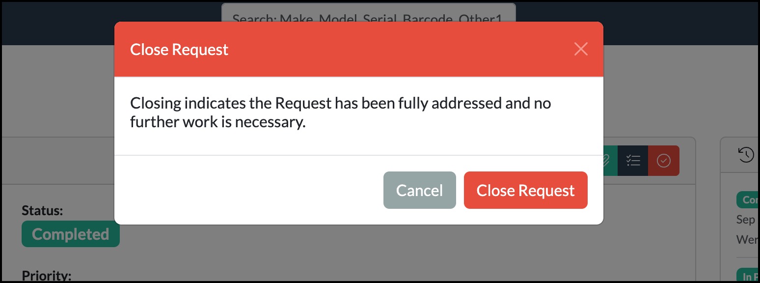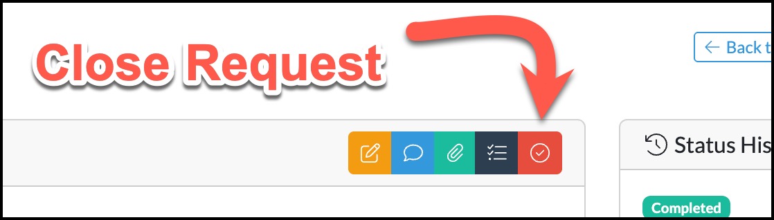 Once completed, a new Close button will be visible at the top right of the Request Details area.