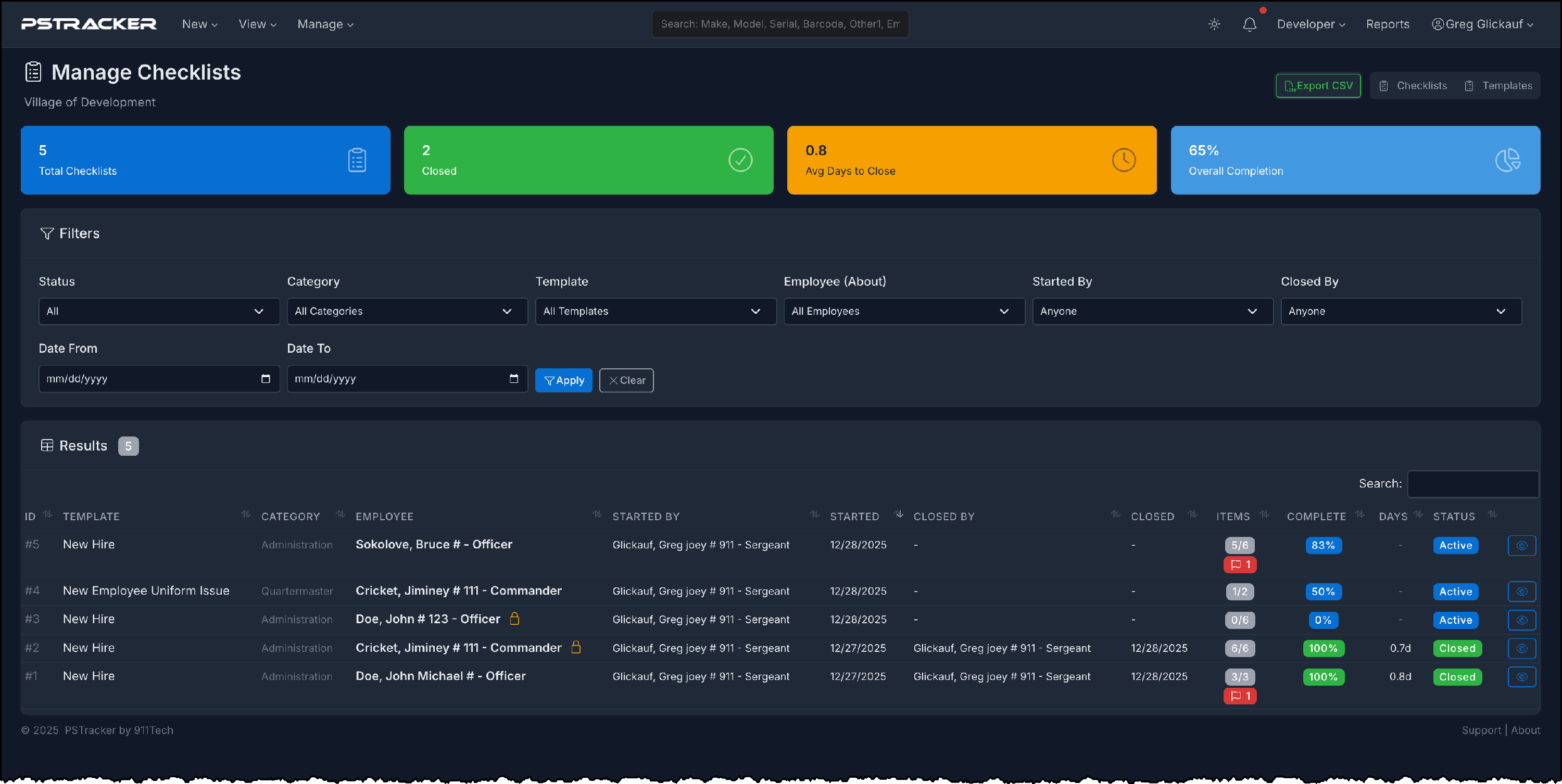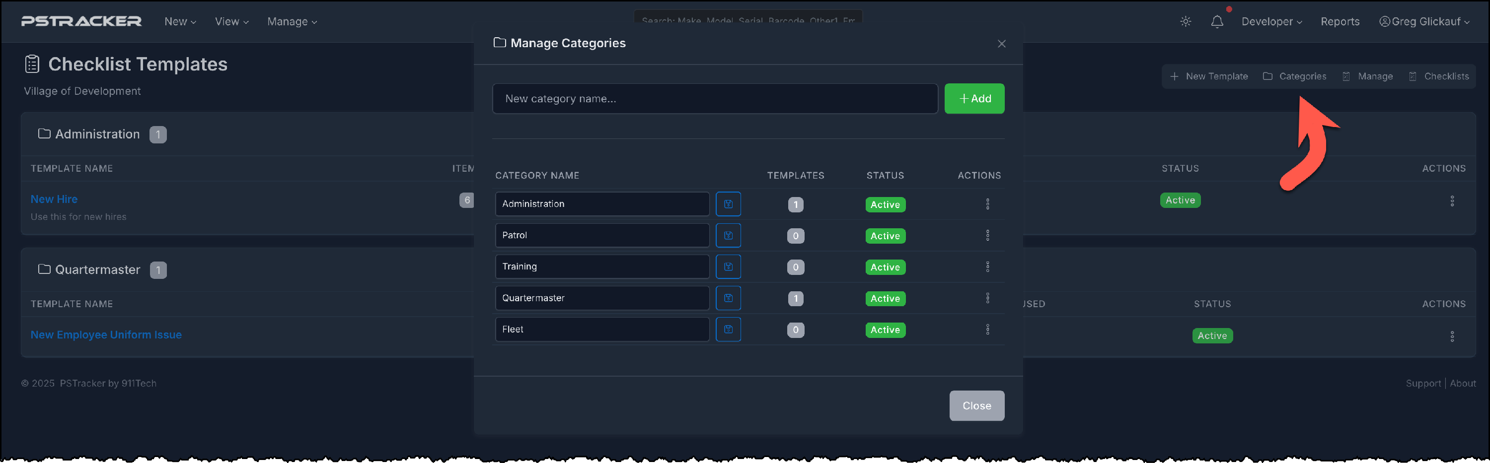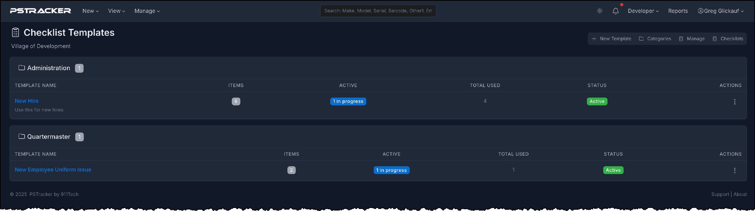 As an administrator, you can create and manage checklist templates, organize them into categories, and monitor checklist usage across your agency.